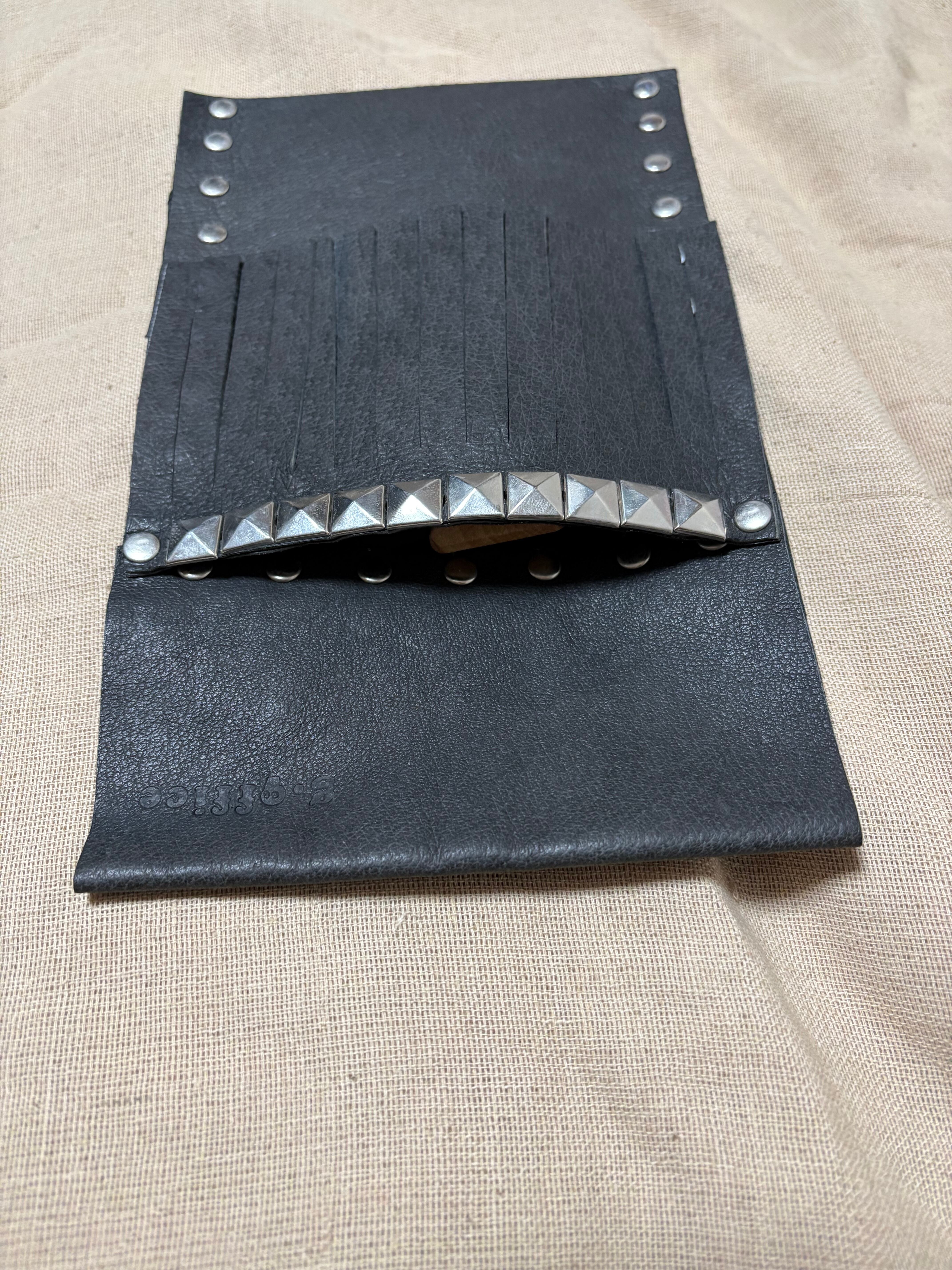 g.officeのレザーライダース携帯ケースは、レザーソムリエによる監修で生まれた高品質なアイテムです。腰ベルトに装着することができ、便利さとスタイリッシュさを兼ね備えています。フリンジとピラミッドカシメの装飾が、シンプルながらも洗練された印象を与え、ファッションにアクセントを加えます。大切な方へのギフトにもぴったりなアイテムです!